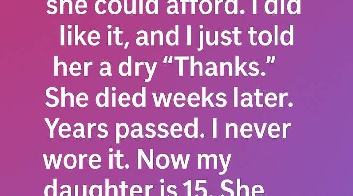 I never wore it. Fifteen years passed. Yesterday, my 15-year-old daughter found it in a box and said,