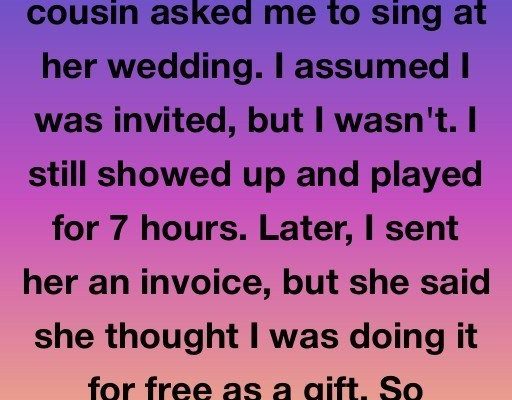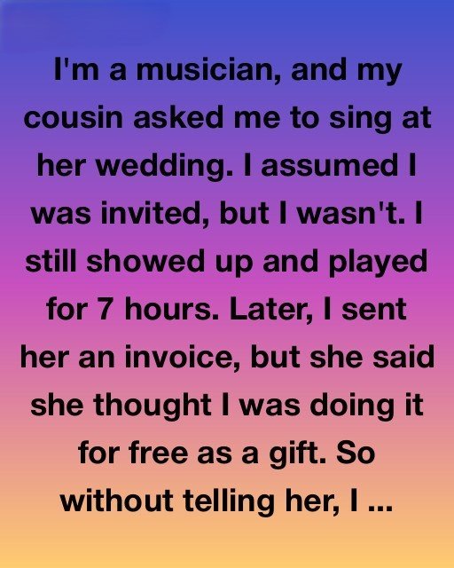 I’m a musician, and my cousin asked me to sing at her wedding. I assumed I was invited, but I wasn’t. I still showed up and played for 7 hours.