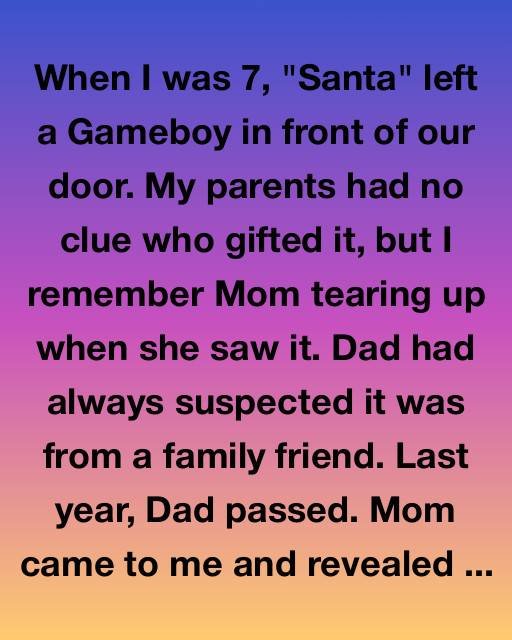 When I was 7, “Santa” left a Gameboy in front of our door. My parents had no clue who gifted it, but I remember Mom tearing up when she saw it. Dad had always suspected it was from a family friend.