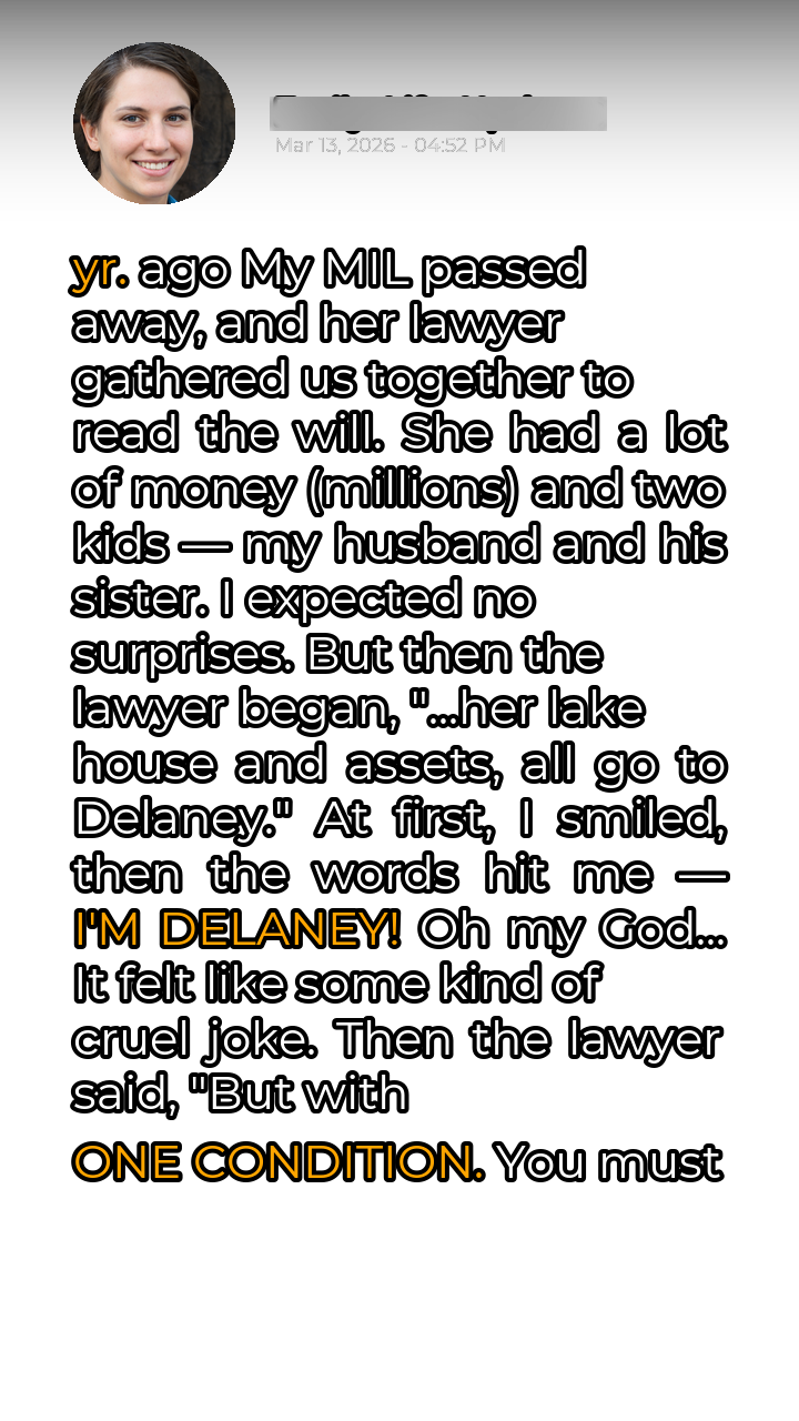 The air in the lawyer’s office was thick with anticipation. My husband, Mark, squeezed my hand reassuringly. His sister, Sarah, sat across from us, her expression unreadable. We were gathered to hear the reading of Mark’s mother’s will. Eleanor, a woman of considerable wealth, had passed away peacefully in her sleep a few weeks prior. Mark and Sarah were her only children, and everyone assumed the inheritance would be split fairly between them. I, Delaney, Mark’s wife of five years, was simply there to offer support. The lawyer, a stern-looking man named Mr. Harrison, cleared his throat and began reading the document. He meticulously detailed various bequests, charitable donations, and smaller items left to distant relatives. Then came the big one: the lake house. Eleanor’s lake house was legendary. Nestled on the shores of Lake Serenity, it was a sprawling, luxurious property that had been in the family for generations. It was worth millions, a true jewel.