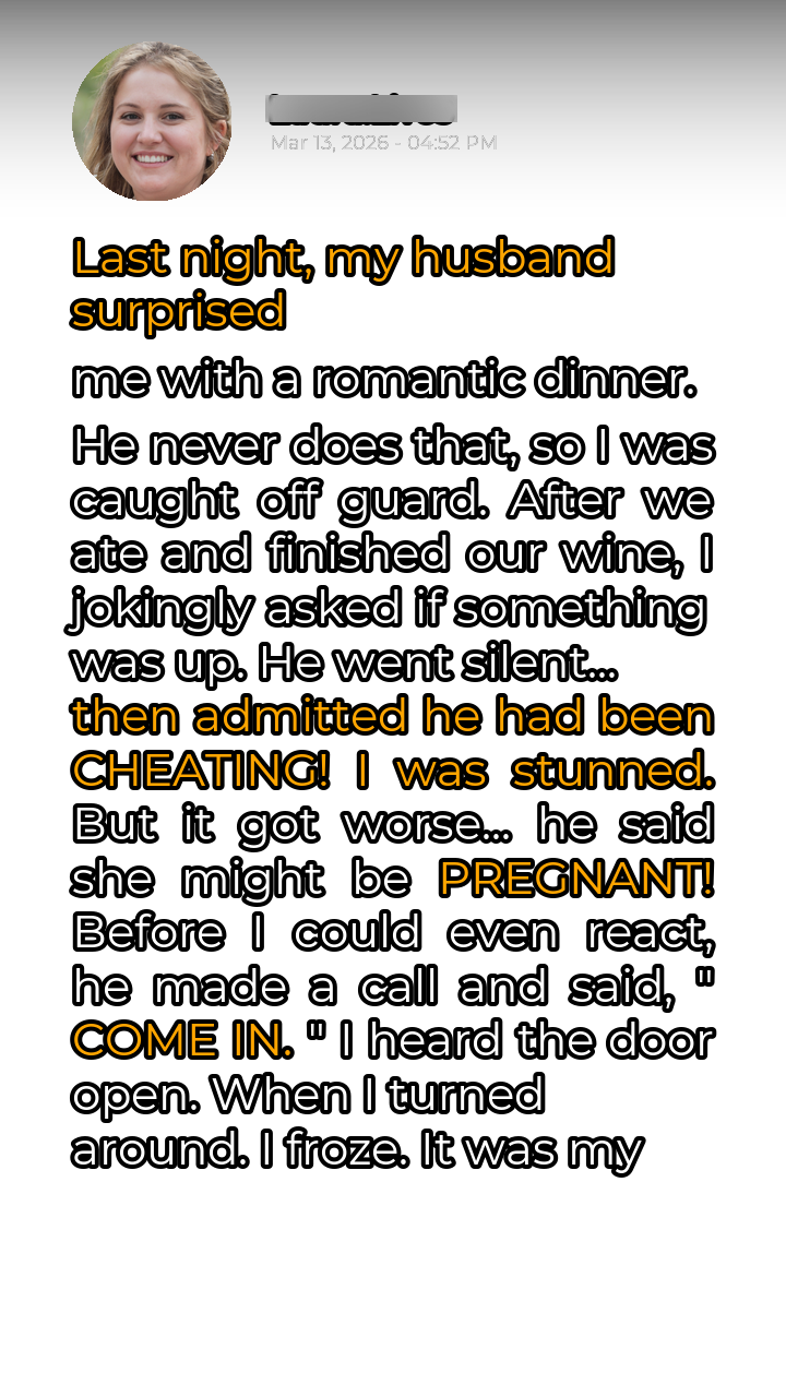 It had been a Tuesday evening, seemingly like any other. Mark, my husband of seven years, had been acting strangely all day, a nervous energy radiating from him that I couldn’t quite place. He’d even taken the afternoon off work, which was highly unusual for him, a workaholic by nature. When I arrived home, the house was transformed. Soft lighting, candles flickering, and the aroma of roasted chicken filled the air. A playlist of our favorite songs played softly in the background. I was genuinely touched. Mark had never been one for grand gestures or romantic evenings. As we ate, the conversation flowed easily. Mark was attentive, charming, and seemed genuinely invested in what I had to say. I found myself relaxing, letting go of the stress of the day and simply enjoying the moment. He even poured me a second glass of wine, something he rarely did, citing a desire to “celebrate us.” I laughed, playfully nudging him. “Celebrating what? Did you finally get that promotion?” He chuckled, a nervous glint in his eye, and changed the subject.
