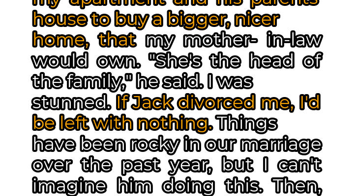 Jack and I had been married for five years, and while we loved each other, the past year had been…challenging. We’d been arguing more, mostly about finances and his increasing deference to his mother. She was a strong woman, no doubt, but her constant interference in our lives was suffocating. Then came the bombshell. One evening, Jack sat me down and, with a disturbingly enthusiastic glint in his eyes, proposed a radical idea. “Honey,” he began, “I’ve been talking to my parents, and we have a plan.” He proceeded to outline a scheme to sell my apartment, their current house, my cabin in the mountains, and even both of our cars. The proceeds, he explained, would be used to purchase a sprawling estate where we could all live together. The catch? His mother would be the legal owner of the property.