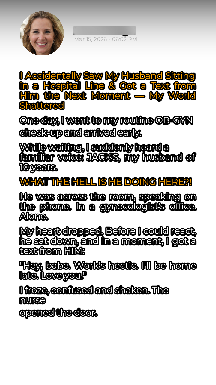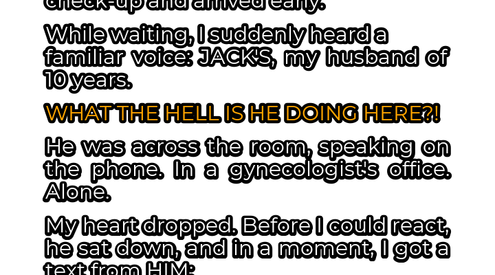 The sterile scent of the OB-GYN’s office had always been a comforting reminder of health and well-being. But on this particular Tuesday morning, it felt suffocating, laden with a sense of impending doom. I had arrived early for my routine check-up, hoping to catch up on some reading before the appointment. Instead, I was about to stumble upon a secret that would unravel everything I thought I knew about my marriage. The sound was unmistakable. A low, familiar timbre, laced with the reassuring cadence that had soothed me through countless anxieties over the past ten years. It was Jack’s voice. But what was he doing here? In a gynecologist’s office? My heart began to pound against my ribs like a trapped bird. He was across the waiting room, engaged in a hushed phone conversation, his brow furrowed in what looked like concern. He paced slightly, his back to me, oblivious to my presence. I strained to hear what he was saying, but the murmur of other patients and the soft background music made it impossible.