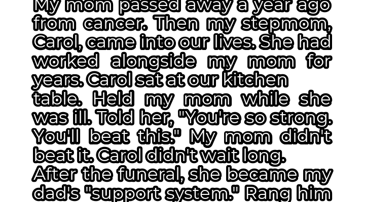 I spent weeks devising a plan, meticulously crafting my revenge. I gathered old recordings of my mom’s voice, snippets from voicemails and home videos. I researched the timeline of Carol’s relationship with my dad, piecing together the puzzle of their affair. The more I uncovered, the more disgusted I became. Carol hadn’t just been a friend; she had been a predator, preying on my dad’s vulnerability while my mom was still alive.