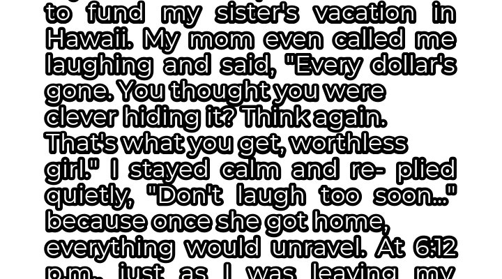 The phone call came as I was packing up to leave for the day. My mother’s voice, usually saccharine sweet, was laced with a venomous glee that sent a chill down my spine. She wasted no time in revealing her treachery, boasting about how they had drained my AmEx to the tune of $99,000, all for my sister’s dream vacation. Her words, “Every dollar’s gone. You thought you were clever hiding it? Think again. That’s what you get, worthless girl,” were like a slap in the face, shattering the illusion of familial love and support I had always clung to.