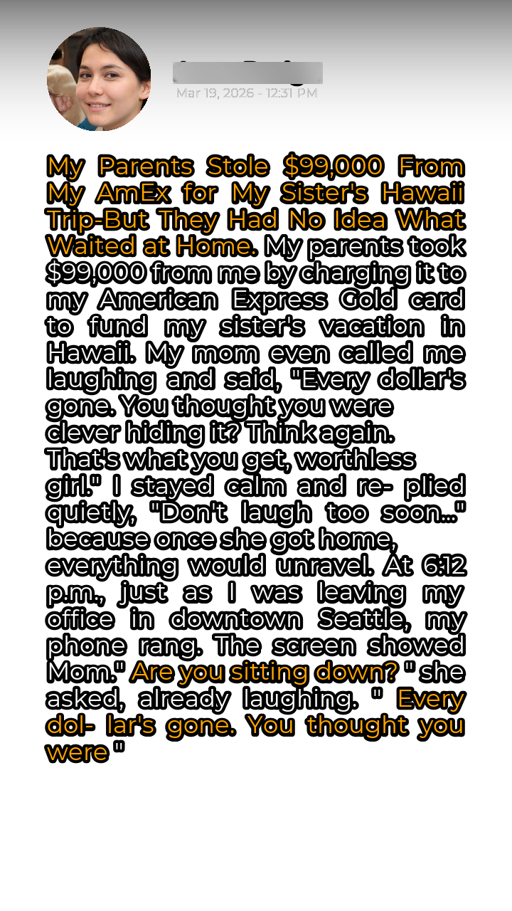 It started like any other day. I woke up, grabbed my coffee, and headed to my office in downtown Seattle, oblivious to the financial storm brewing on the horizon. I had been meticulously saving for years, carefully managing my finances to secure a comfortable future. I trusted my family implicitly, or so I thought. My American Express Gold card was a tool for convenience, not a piggy bank for my parents’ whimsical desires. My sister, always the favored child, had apparently expressed a longing for a luxurious Hawaiian getaway, and my parents, as always, were eager to grant her wish, regardless of the cost – or who paid for it.