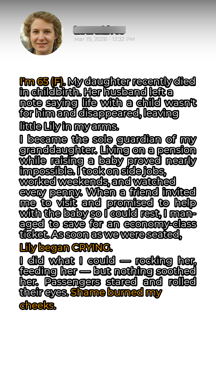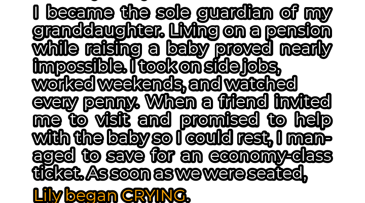 The pain of losing my daughter, Sarah, was a wound that refused to heal. One day she was here, vibrant and full of life, excitedly preparing for motherhood; the next, she was gone, a victim of childbirth complications. As if that wasn’t enough, Sarah’s husband, Mark, crumbled under the weight of responsibility. He left a brief, heartless note stating that fatherhood wasn’t for him and vanished, leaving baby Lily in my trembling arms. At 65, I was thrust back into the role of a full-time parent, a challenge I was ill-equipped to handle, both emotionally and financially. My pension, barely sufficient for one, now had to stretch to cover two. Diapers, formula, clothes, doctor’s visits – the expenses piled up relentlessly. I took on odd jobs, cleaning houses, babysitting other people’s children, anything to make ends meet. Weekends were no longer for rest but for relentless work. Every purchase was scrutinized, every luxury sacrificed. I was running on fumes, both physically and emotionally depleted. My friend, bless her heart, noticed my struggle and offered a lifeline – a visit to her home, where she promised to help with Lily so I could finally get some much-needed rest. After months of scrimping and saving, I managed to afford an economy-class ticket.