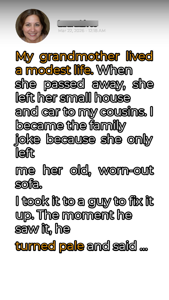 My grandmother, bless her soul, lived a life of quiet simplicity. She wasn’t one for extravagance or grand gestures. When she passed away, the reading of the will was a somber affair, filled with the hushed expectations of family members eager to see what treasures she might have left behind. My cousins, Sarah and Mark, were the clear favorites, always visiting and showering her with attention. So, it came as no surprise when they inherited the bulk of her estate: the cozy little house she’d lived in for fifty years and her trusty, if somewhat ancient, Buick. I, on the other hand, was the recipient of her “most prized possession” – a battered, worn-out sofa that had seen better days decades ago. It was a relic from a bygone era, with faded floral patterns and springs that audibly groaned with every movement. The family chuckled, exchanging knowing glances. I became the punchline of every gathering, the cousin who got stuck with the useless old couch. I tried to laugh it off, but a small part of me couldn’t help but feel a pang of disappointment. Was that all I meant to her?