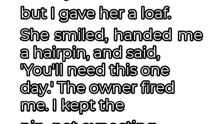 “Of course,” I replied, forcing a reassuring smile. I grabbed a freshly baked loaf of sourdough, the aroma filling the air. “Here you go. It’s on the house.” Her face lit up with relief, a genuine smile gracing her lips. “Oh, thank you,” she said, her voice thick with emotion. “Thank you so much. I don’t have much to offer, but please, take this.” She reached into her pocket and pulled out a simple hairpin, made of tarnished silver. “You’ll need this one day,” she said, her eyes holding a strange knowing.