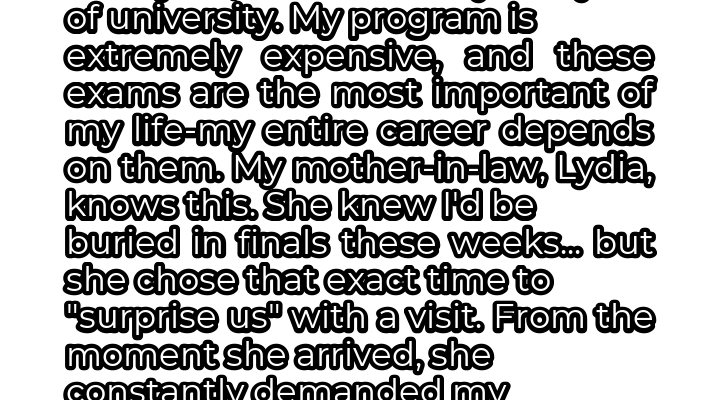 I’m a 23-year-old woman, happily married to my husband, Mark, who is 26. I’m currently in my final year of university, pursuing a very demanding and expensive program. These final exams aren’t just another test; they’re the culmination of years of hard work and a significant financial investment. My entire future career trajectory hinges on how well I perform in these exams. My mother-in-law, Lydia, was well aware of all of this.