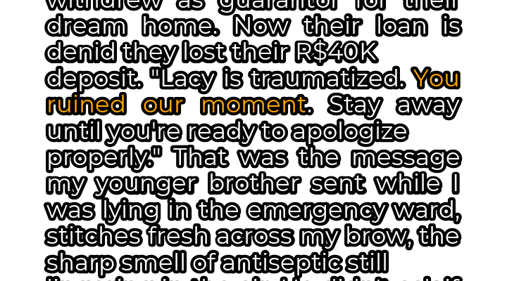 The next morning, still sore and emotionally drained, I contacted the bank. With a heavy heart, I withdrew my guarantee. The loan officer, a long-time family friend, expressed concern. I simply stated that my circumstances had changed, and I could no longer provide the financial backing. The officer understood, though I could hear the disappointment in his voice. I knew the ramifications of my actions. Their loan would be denied. Their dream home would slip through their fingers. And the R$40,000 deposit they had already paid would be lost.