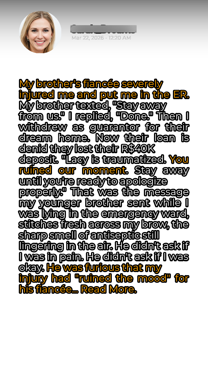 The text message glowed ominously in the dim emergency room, the words searing themselves into my memory: “Lacy is traumatized. You ruined our moment. Stay away until you’re ready to apologize properly.” My younger brother, Mark, had always been easily swayed, a trait I often excused as youthful naiveté. But this…this was beyond the pale. I stared at the fresh stitches above my eye, throbbing in sync with my escalating anger. The antiseptic stung, but it was nothing compared to the betrayal. The incident itself was a blur of raised voices, spilled wine, and a sudden, unexpected shove. Lacy, fueled by champagne and what I now suspected was a simmering resentment, had lashed out during their engagement party. I had innocently commented on the exorbitant price of the venue, a casual observation that apparently struck a nerve. One minute I was mid-sentence, the next I was sprawled on the marble floor, a sharp pain radiating from my forehead.