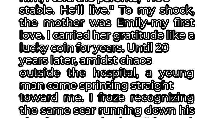 Without hesitation, I barked orders, directing the young man and the surrounding crowd to clear a path. We rushed Emily inside, the urgency of the situation overriding the shock and disbelief that threatened to overwhelm me. The team sprang into action, and once again, I found myself battling against time, using every skill and ounce of knowledge I possessed to save the woman I had once loved, the mother of the boy whose life I had saved two decades earlier. After what felt like an eternity, Emily was stabilized. It turned out that she had suffered from an aneurysm. This time, it was my turn to tell her son, “She’s stable, she’ll live.”