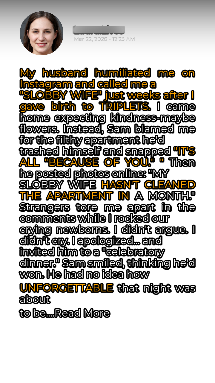 The exhaustion was bone-deep, a constant companion that clung to me like a second skin. Triplets. Three tiny, perfect humans demanding every ounce of my energy, every moment of my attention. My body was a landscape of stretch marks and sleepless nights, but my heart, despite the weariness, was undeniably full. I anticipated understanding from Sam, my husband, maybe even a little help navigating this overwhelming new chapter. What I received instead was a public shaming, a calculated act of cruelty that shattered my world. Sam had always possessed a certain… laissez-faire attitude towards cleanliness, to put it mildly. But I loved him, or at least, I believed I did. I had overlooked his minor flaws, accepting them as part of the package. The apartment, in the wake of the triplets’ arrival, had devolved into a chaotic symphony of baby bottles, burp cloths, and overflowing diaper pails. It was a mess, yes, but a mess born of pure, unadulterated survival. I was barely managing to keep my head above water, struggling to meet the relentless demands of three infants, let alone maintain a pristine, magazine-worthy home.