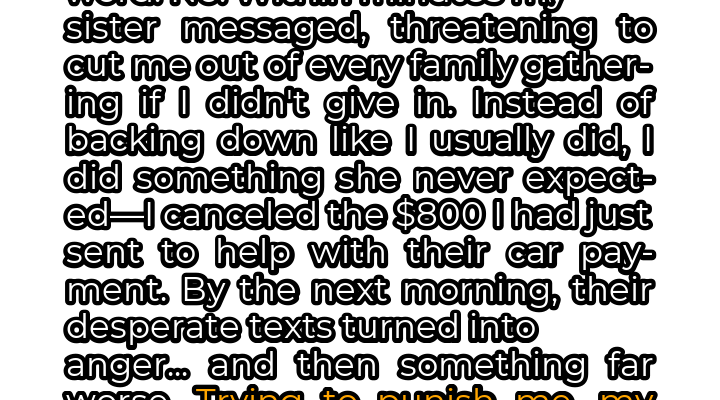 For the first time, I decided to stand my ground. Instead of apologizing and rushing to fulfill their request, I logged into my bank account and canceled the $800 I had recently sent to help them with their car payment. It was a petty move, I admit, but it felt incredibly satisfying. The immediate aftermath was predictable: a torrent of angry texts and voicemails filled with accusations of cruelty and spitefulness. I ignored them, steeling myself for the inevitable fallout. I knew my sister was capable of holding a grudge, but I underestimated the depths to which she would sink.