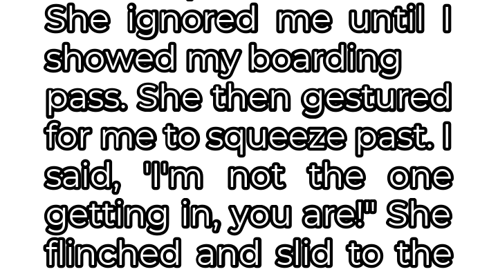 Finally, I had no choice. I gently tapped her shoulder. She stirred slightly, mumbled something unintelligible, and then settled back into her faux slumber. Exasperated, I pulled out my boarding pass and held it in front of her face. Only then did she acknowledge me, cracking open one eye and offering a dismissive wave towards the aisle. She clearly expected me to squeeze past her, climbing over her legs to get to my rightful seat.