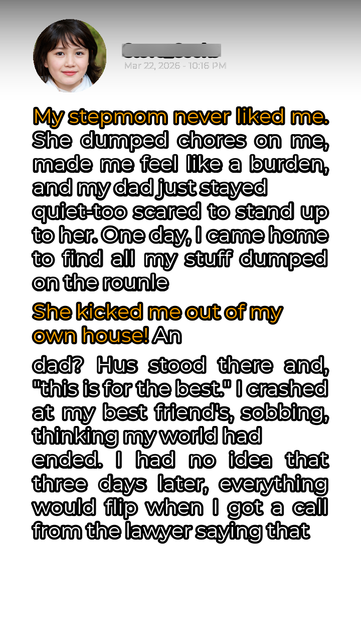 The day I came home to find my belongings piled haphazardly on the front lawn was the culmination of years of simmering animosity. Carol stood in the doorway, arms crossed, a triumphant smirk playing on her lips. “Get out,” she hissed, her voice dripping with venom. “You’re not wanted here.” My father stood behind her, his face a mask of shame and guilt, uttering those devastating words: “This is for the best.” My world shattered. I had no place to go, no one to turn to except my best friend, Sarah.