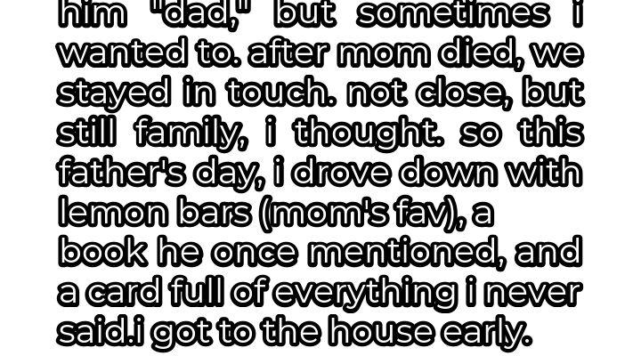 So, this Father’s Day, I decided to do something special. I drove down to his town with a basket filled with thoughtful gifts: lemon bars, my mom’s favorite, baked from her recipe; a first edition copy of a book he’d once mentioned wanting; and a card overflowing with all the things I’d never said, all the gratitude I’d kept bottled up inside. I wanted him to know how much he meant to me, how much I appreciated his presence in my life, how much I considered him a father figure, even if I never voiced it aloud.