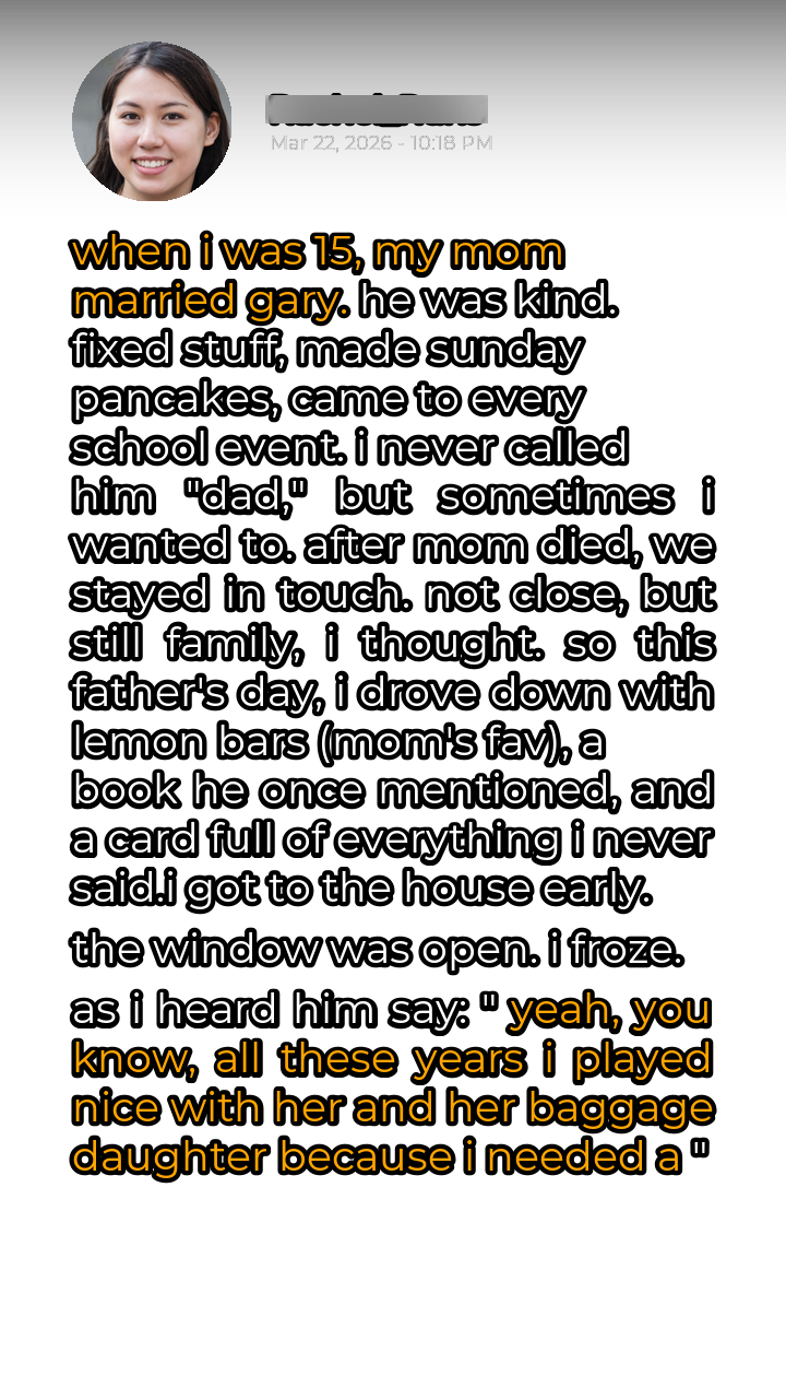 I froze, my hand hovering inches from the doorbell. He was saying, “Yeah, you know, all these years I played nice with her and her baggage daughter because I needed a place to hide the money. She never suspected a thing. And the daughter? Pathetic. So eager for a father figure, she wouldn’t have noticed if I was robbing her blind.” The basket slipped from my grasp, the lemon bars tumbling onto the porch with a sickening thud. The card, filled with heartfelt sentiments, lay discarded amidst the scattered pastries, a testament to my shattered illusions. He had used us, manipulated us, all for his own selfish gain. The kind, dependable Gary I thought I knew was nothing more than a carefully constructed facade, a mask worn to conceal his true, avaricious nature.