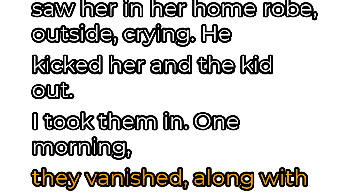 The quiet suburban street I called home was usually a haven of predictable routines and polite nods between neighbors. But beneath the surface of manicured lawns and synchronized sprinkler systems, a drama was unfolding that would shatter my sense of security and leave me questioning the very nature of human kindness. It started with Sarah, a young woman who lived just a few houses down. I’d often see her tending her small garden, a fragile smile gracing her face. But there was a sadness in her eyes that hinted at a life far from idyllic. Rumors swirled about her husband, Mark. Whispers of a volatile temper and controlling behavior painted a grim picture. Then one afternoon, the whispers turned into a stark reality. I was returning from work when I saw Sarah standing outside her house, clad only in her bathrobe, tears streaming down her face. Her young son, no older than five, clung to her leg, his face mirroring her distress. Mark had kicked them out, she sobbed, his anger finally reaching a breaking point. Without hesitation, I offered them shelter. My spare room became their refuge, my kitchen their source of comfort. I listened to Sarah’s story, the years of emotional abuse, the constant belittling, the fear that had become a constant companion.