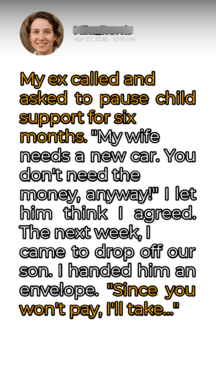 The phone call had come on a Tuesday afternoon, a day like any other. I was juggling work emails and helping my son, Leo, with his homework when my ex-husband, Mark, appeared on my caller ID. A knot of apprehension tightened in my stomach. Mark and I had a turbulent history, and while we had managed to establish a semblance of civility for Leo’s sake, his calls were rarely bearers of good news. I answered, bracing myself for the inevitable drama. “Hey,” he said, his voice a little too casual, a little too breezy. “Listen, I have a bit of a… situation.” My internal alarms blared. He launched into a convoluted explanation about his wife, Tiffany, and her “dire” need for a new car. Apparently, her current vehicle was on its last legs, and without a reliable set of wheels, her meticulously planned life would crumble. He then proceeded to ask me, with an almost unbelievable level of entitlement, if I would consider “pausing” child support payments for the next six months to help fund Tiffany’s automotive upgrade. He even had the gall to add, “You don’t really need the money anyway, do you?”