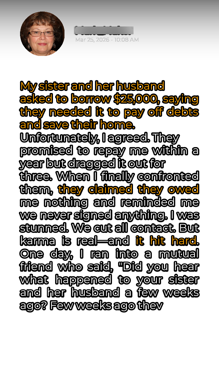 Sister Borrowed $25K, Then Karma Unleashed a Shocking Twist!