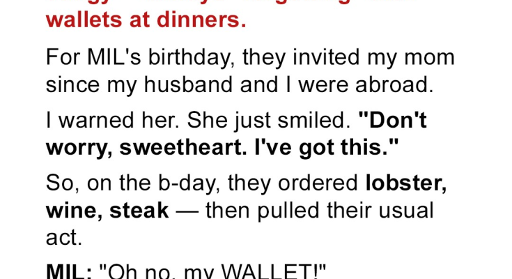 My in-laws, bless their hearts (or lack thereof), were legendary for their frugality. Not the admirable kind, mind you, but the kind that involved elaborate schemes to avoid paying for anything. Dinners were their favorite hunting ground. It was always the same routine: extravagant orders followed by a dramatic enactment of forgotten wallets, misplaced purses, or urgent business calls conveniently timed with the arrival of the bill. My husband and I had learned to navigate their peculiar brand of stinginess, but it was still a source of constant amusement and mild irritation. When my mother-in-law’s birthday rolled around, my husband and I were stuck overseas on a business trip. Naturally, my in-laws extended an invitation to my mother, knowing full well we wouldn’t be there to pick up the tab. I tried to warn her, painting a vivid picture of their notorious cheapness. “Mom, they’re going to try and stick you with the bill,” I cautioned. But she just smiled, that knowing, reassuring smile that meant she had a plan. “Don’t worry, sweetheart. I’ve got this,” she said. I had a bad feeling, but I knew better than to argue with her.