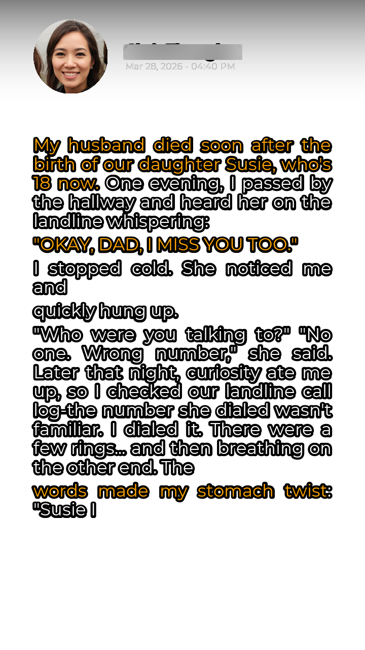The silence that followed my husband Mark’s death was deafening. It echoed through the halls of our home, amplified by the absence of his laughter and the warmth of his presence. Susie was just a newborn when he passed, a cruel twist of fate that robbed her of a father she would never know and left me a widow struggling to navigate the uncharted waters of single parenthood. I dedicated my life to raising her, pouring all my love and energy into making sure she never felt the void his absence created. Eighteen years passed, and Susie blossomed into a bright, independent young woman. She was intelligent, compassionate, and had a spirit that reminded me so much of Mark. We had built a life together, just the two of us, filled with love and shared memories. Or so I thought. One evening, as I walked past the hallway, I heard Susie’s voice, hushed and secretive, emanating from the landline. I paused, my heart skipping a beat, as I listened to her side of the conversation.