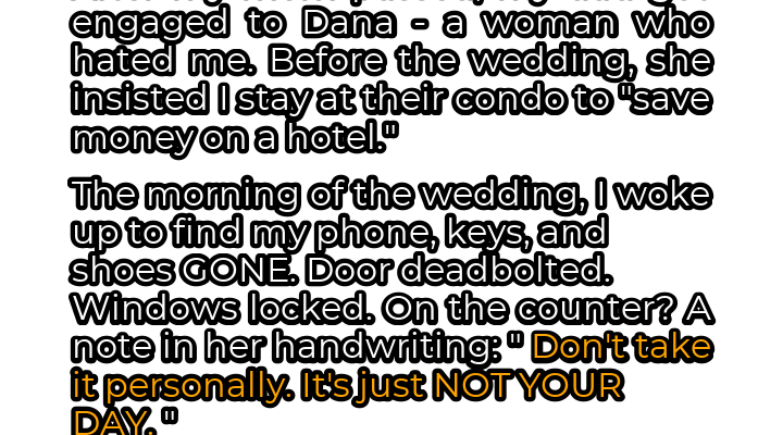 I marched straight to the bridal suite. The door was unlocked. Inside, I found Dana putting the finishing touches on her makeup. Her face was radiant, but her eyes held a cold, calculating glint. I held up my phone, already recording. “Dana,” I said, my voice trembling with rage, “I know what you did.” I played a recording of her telling her friend about locking me in. Her face paled as she realized her scheme had been exposed. I called my dad into the room, he arrived with Mark. Dana tried to lie her way out of it, but my dad saw the truth in her eyes. The wedding was off.
