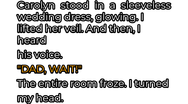 And then, I heard his voice. “DAD, WAIT!” The entire room froze. The music stopped abruptly, and every head turned towards the source of the interruption. Tim had risen from his seat, his face pale, his eyes wide with a fear that seemed to consume him. He was pointing directly at Carolyn, his small body trembling.