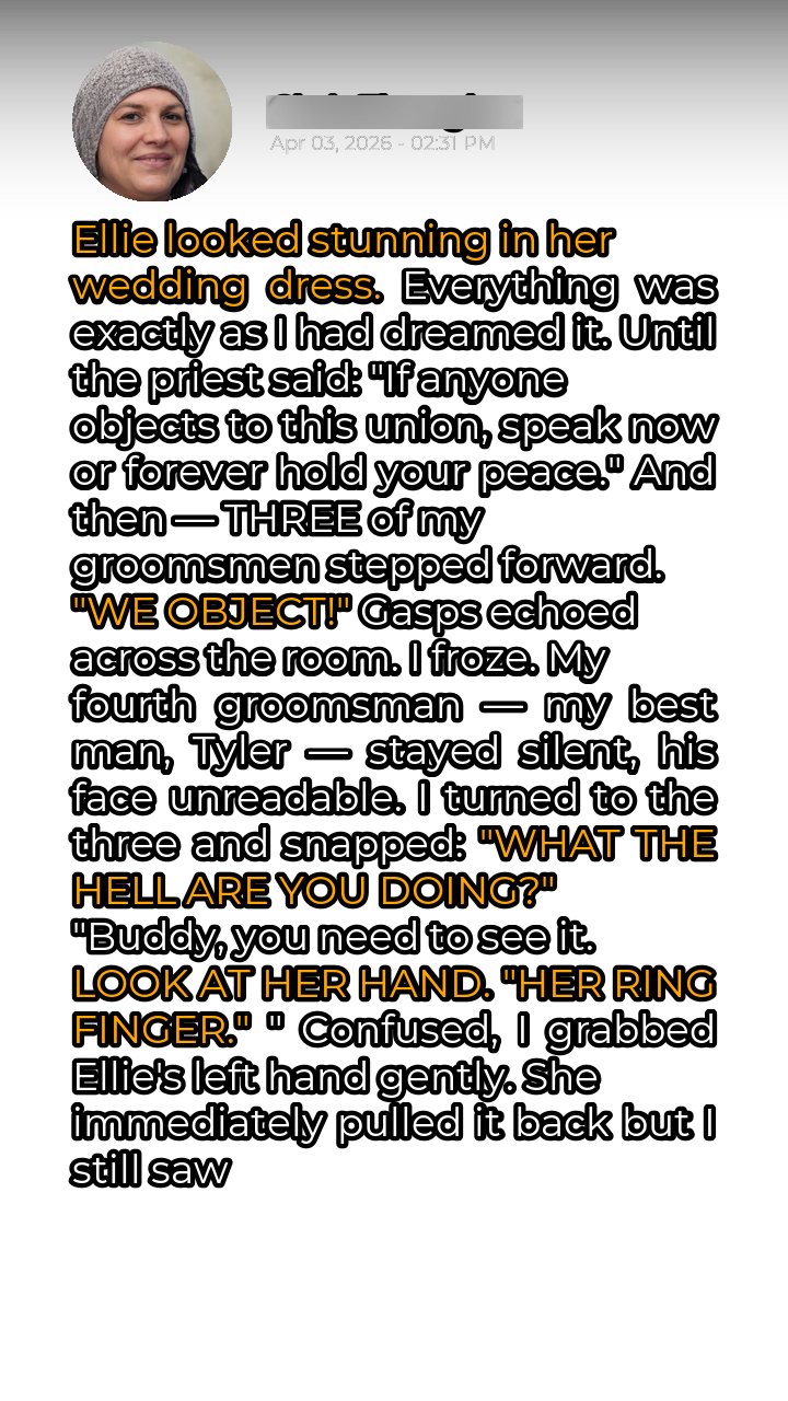 Mark, the most outspoken of the three, stepped forward. “Buddy, you need to see it. Look at her hand. Her ring finger.” Confused and increasingly alarmed, I reached for Ellie’s left hand, intending to reassure her and understand what my friends were referring to. She immediately recoiled, pulling her hand away as if burned. But in that fleeting moment, I saw it.