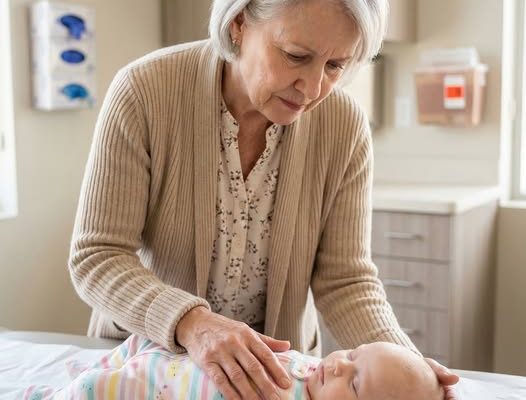 I lifted him carefully, pressing him against my shoulder as I whispered, “Hey there, sweetheart, Grandma’s right here,” but his small body stiffened in a way that made my hands tighten instinctively, and that was when I noticed the faint discoloration beneath his onesie.