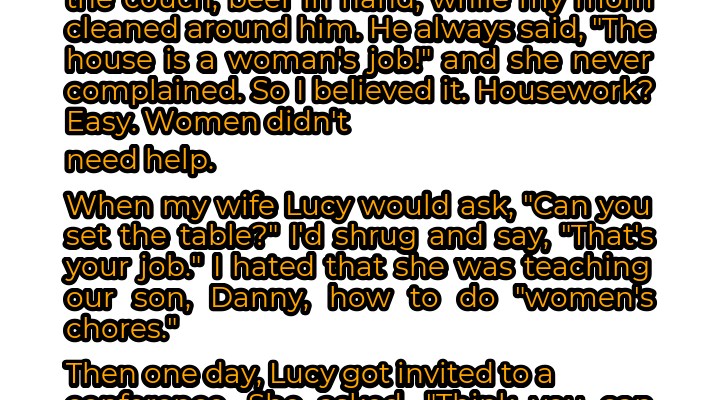Mark had always lived by a simple, albeit antiquated, code: a woman’s place was in the home. He’d watched his father do the same, a beer perpetually in hand while his mother bustled around, cleaning and cooking. His father’s mantra, “The house is a woman’s job!” had been drilled into him since childhood. Mark saw no reason to question it. Housework seemed easy enough, a leisurely activity, certainly nothing a man should concern himself with. So, when he married Lucy, he unconsciously adopted the same mindset. Lucy, however, was a modern woman, a working professional who valued equality and partnership. She gently challenged Mark’s ingrained beliefs, but his resistance was firm. When she’d ask for a simple favor, like setting the table, Mark would shrug it off, uttering, “That’s your job.” The resentment grew, especially when Lucy started involving their son, Danny, in household chores. Mark saw it as a betrayal, an attempt to emasculate the boy by forcing him into “women’s work.” He stubbornly clung to his outdated ideals, blind to the unfairness he was perpetuating.