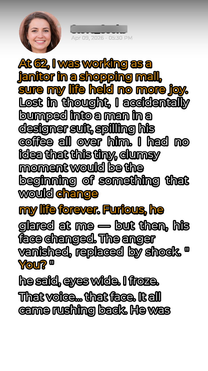 At 62, life had settled into a monotonous rhythm. My days were defined by the sterile scent of cleaning fluid and the endless expanse of polished floors at the shopping mall. I was a janitor, a ghost in the machine of consumerism, resigned to a life devoid of excitement or surprise. The youthful dreams I once harbored had long since faded, replaced by the quiet acceptance of a life that had simply… happened. Joy felt like a foreign concept, a relic from a distant past. One Tuesday morning, lost in the labyrinth of my own thoughts, I rounded a corner a little too quickly. Disaster struck in the form of a collision – a jarring bump against a figure sharply dressed in a designer suit. The inevitable followed: a cascade of hot, dark coffee erupted from its cup, splattering across the pristine fabric. My heart sank. I was already invisible to most; this was sure to make me a target of scorn.