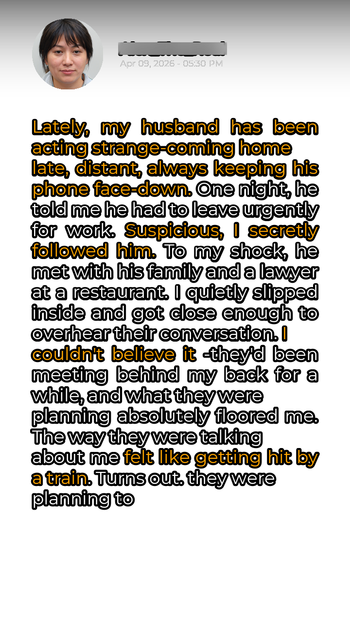 Unable to contain my rage and heartbreak any longer, I stormed over to their table. My voice, trembling with fury, cut through their hushed conversation. “How dare you?” I screamed, my eyes blazing with anger. “How dare you sit here, plotting to destroy my life behind my back?” The room fell silent as all eyes turned to me. Mark’s face paled, his eyes wide with shock and guilt. His family, however, remained defiant, their expressions hardened with contempt. In that moment, I knew my marriage was over. The trust was irrevocably broken. The love I thought we shared was nothing more than a carefully constructed facade. I turned and walked away, leaving them to their scheming and their lies. I walked out of that restaurant, and out of Mark’s life, forever. The road ahead would be difficult, but I knew I deserved better than to be trapped in a web of deceit and betrayal. I would rebuild my life, stronger and wiser, and find a love that was built on honesty and respect, not greed and manipulation.