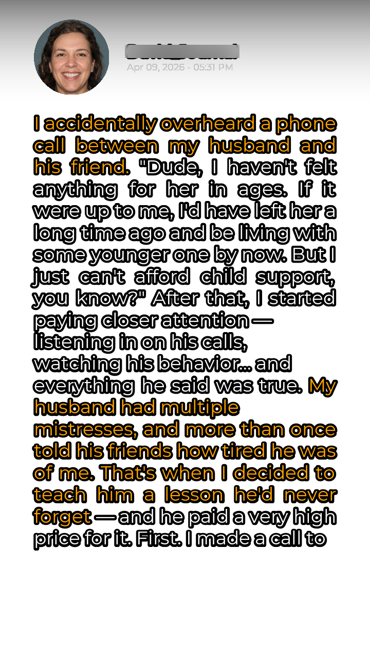 With a deep breath, I dialed the number. The IRS. I calmly and methodically reported every detail of his unreported income, providing them with all the evidence I had gathered. The call was the first step in my plan for revenge. I knew the IRS would investigate, and I knew they would find plenty of discrepancies. The penalties, the back taxes, the fines – they would be astronomical. It was a financial reckoning that would cripple him.