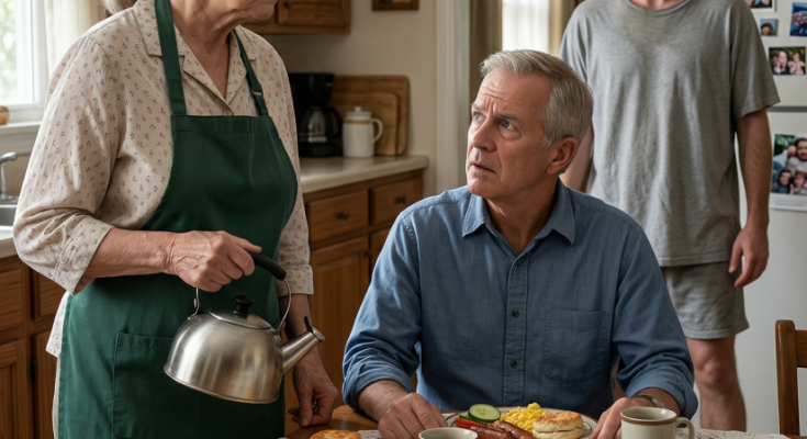 Wyatt walked into the kitchen yawning and disheveled, his arrogance still fully intact despite what he had done the night before. He saw the set table and smiled with a sense of superiority as he reached for a biscuit without asking.