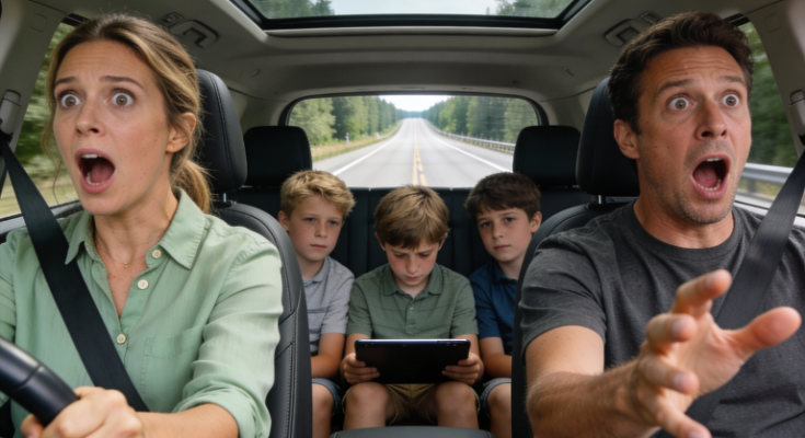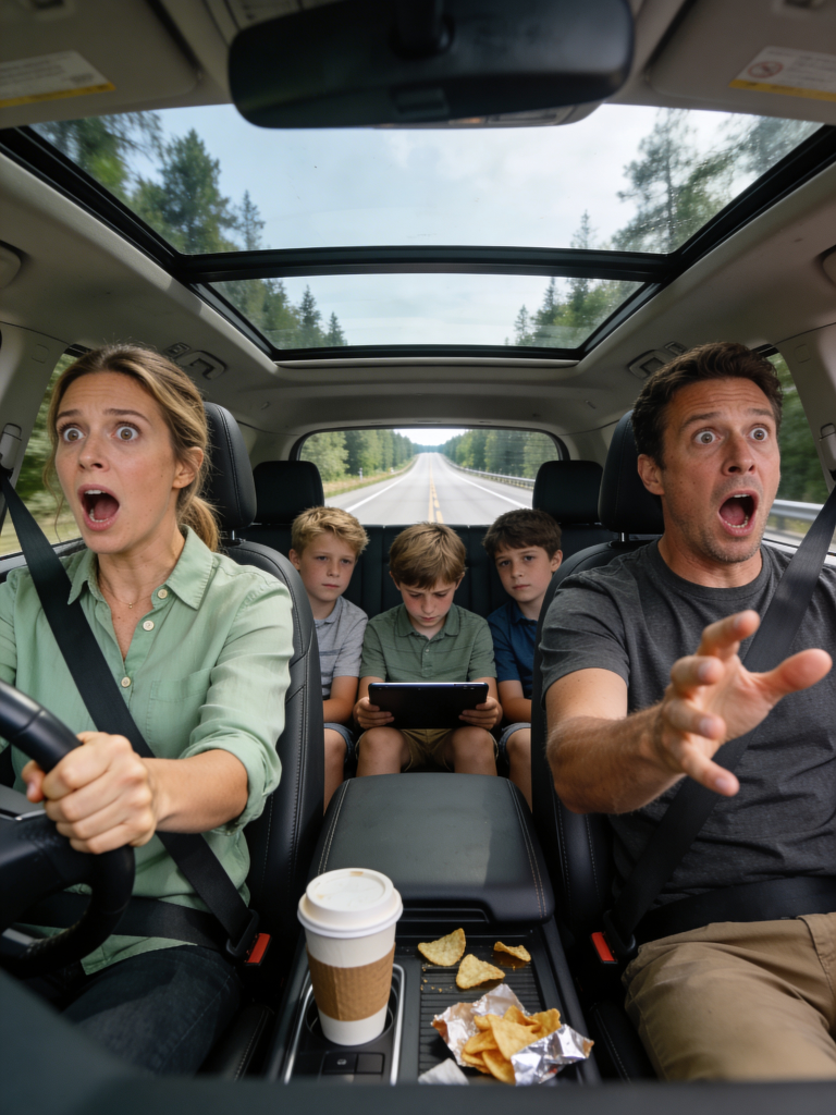 One second we were just another family on the highway outside Riverside, California with coffee in the cupholder and snack wrappers multiplying like rabbits, and the next second he was staring straight ahead like the windshield had turned into a screen showing our funeral.