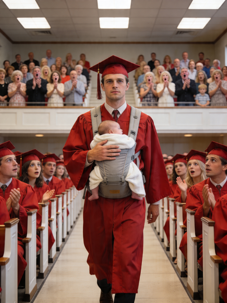 The auditorium was bright, loud, overflowing with flowers, camera flashes, and proud families who believed the hardest part of parenting was finally behind them.