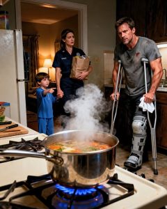 I looked across the small kitchen. Ryan’s brace leaned against the wall while he carefully stitched Mason’s torn backpack strap.