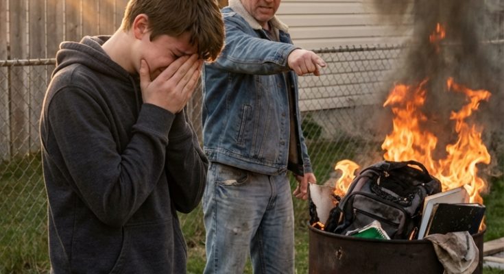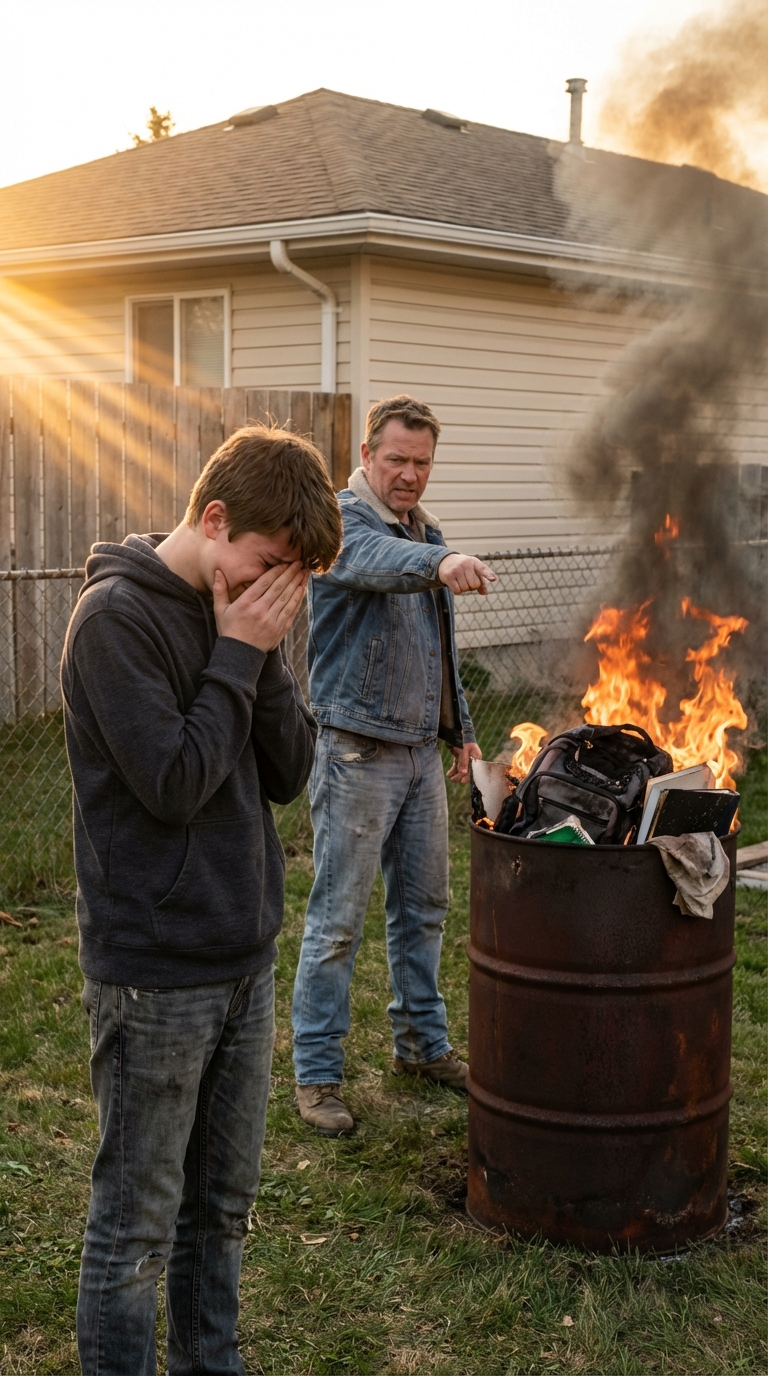 Not just a handful of shirts or a box of things from the garage. He dragged out my clothes, my notebooks, my work boots, my mother’s old coffee mug I had hidden in my closet, the framed photo from my high school graduation, even the secondhand laptop I had bought with money from roofing jobs that summer. He dumped it all into a metal barrel behind our house in Dayton, Ohio, and set it on fire like he was purifying the family name.