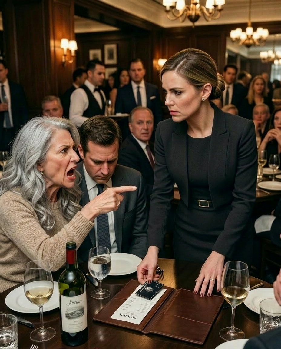 I glanced down at the bill, then back at her. Five thousand dollars. Private dining room. Premium wine. A birthday dinner she had insisted on hosting for her husband.