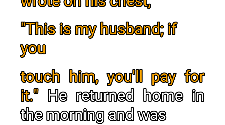 As Tom stood in their bedroom, meticulously knotting his tie, a mischievous glint sparkled in Sarah’s eyes. “You’re looking rather dashing tonight, Mr. Henderson,” she purred, leaning against the doorframe, a playful smirk dancing on her lips. “All those single ladies at your office party are going to be lining up.” Tom chuckled, a warm, reassuring sound. “Don’t be silly, love. You know I only have eyes for one.” But the idea had taken root. Retrieving a permanent marker from her art supplies, she approached him with a theatrical flourish. “Just a little something for clarity,” she declared, uncapping the pen. Tom, accustomed to her whimsical antics, braced himself, a smile playing on his lips as she gently pulled aside his crisp white shirt. The cool tip of the marker traced words onto his warm skin, her fingers occasionally tickling him, eliciting soft laughs. In bold, unmistakable script, she wrote across his chest, just above his heart: “This is my husband; if you touch him, you’ll pay for it.” It was a joke, a silly, possessive declaration meant to make them both laugh, a testament to their easy intimacy and her fond, slightly over-the-top affection. Tom, blushing faintly, buttoned his shirt, the ink now hidden, a private, amusing secret between them.