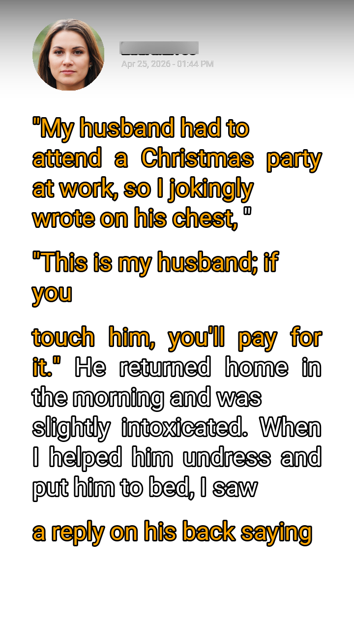 Her eyes, wide with a sudden, dawning horror, fixated on the expanse of his back as the last of the fabric slipped away. In the dim light, stark against his pale skin, a fresh, dark inscription materialized, boldly written in what looked like the very same permanent marker she had used hours earlier. Her breath hitched in her throat, catching painfully. The world around her seemed to tilt, the comfortable intimacy of their bedroom dissolving into a chilling tableau. Her heart hammered against her ribs, a frantic drumbeat of disbelief and burgeoning terror. The reply was unmistakable, undeniable, and etched with an audacious defiance that made her stomach clench with an icy grip. It read, in a confident, flowing script that was distinctly not Tom’s: **”Payment received. He was quite compliant.”**