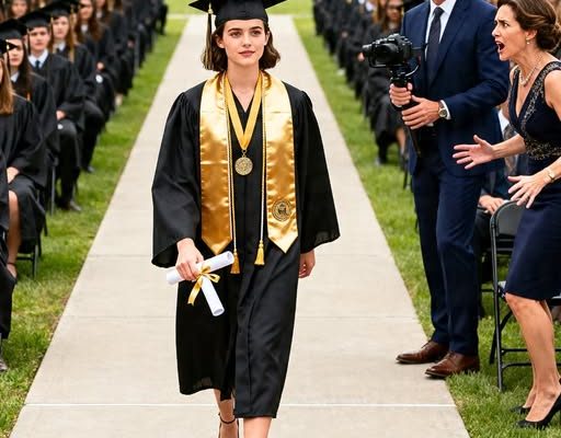 Graduation morning arrived bright and clear. Families filled the walkways carrying bouquets and balloons. Cameras flashed everywhere. The whole campus felt like it was vibrating with celebration.