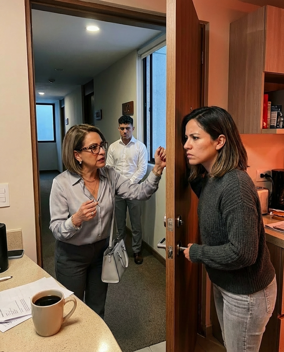 Through the peephole, I saw her—perfectly dressed, furious—and Anthony beside her, tense. Neighbors were already watching.