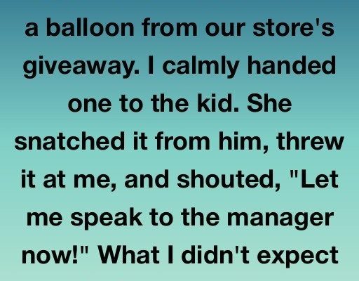 A mom screamed at me because her kid didn’t win a balloon from our store’s giveaway. I calmly handed one to the kid. She snatched it from him, threw it at me, and shouted, ‘Let me speak to the manager now!’ What I didn’t expect was that her son came up to me and said, ‘I wish you were my mom.’