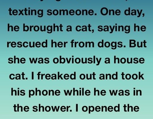 I freaked out and took his phone while he was in the shower. I opened the messages and was stunned. It turned out he hadn’t rescued the cat from dogs.