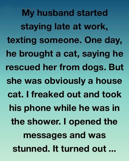 My husband started staying late at work, texting someone. One day, he brought a cat, saying he rescued her from dogs. But she was obviously a house cat.