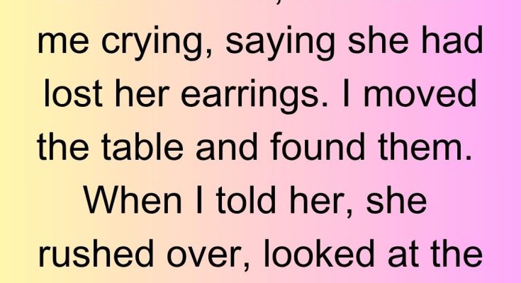 MY GOD. Every compliment I’d ever received on them was a knife in my back. Every time I looked in the mirror, I saw not a beautiful gift, but a glittering reminder of how utterly blind I had been. She didn’t just lose her earrings. She lost them for me. And in doing so, I lost everything.
